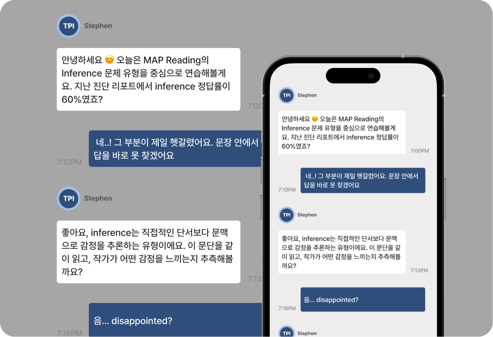 TPI의 정밀한 학업 진단, 열정적인 튜터링,그리고 디테일한 클래스 피드백은 확실한목표 달성을 보장합니다.