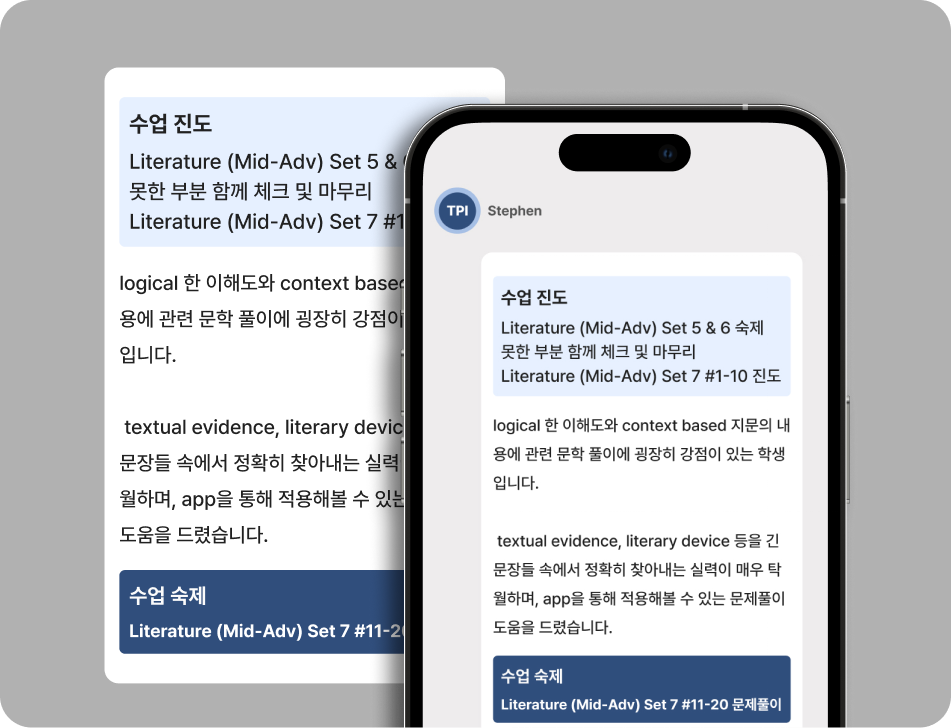 학부모와 학생이 한눈에 확인할 수 있는 체계적인 피드백 리포트를 제공합니다.